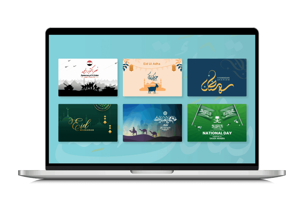 نصمم لك بطاقات تهنئة رقمية مخصصة بالاسم والشعار،